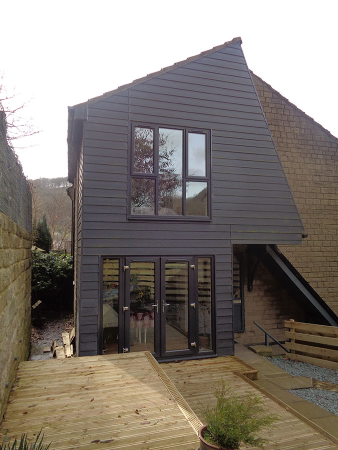 This project is a sculptural addition to a compact house nestled on the steep slopes of a